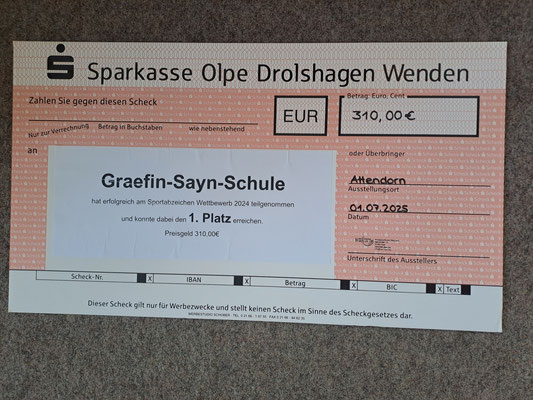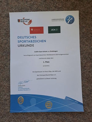Ehrungsveranstaltung zum deutschen Sportabzeichen durfte unsere Schule ein Preisgeld in Höhe von 310,- € in Empfang nehmen. Ein großer Applaus für alle unsere sportlichen Kinder.