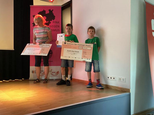 bei Max und Theo Rahrbach die stellvertretend für die Schule den Scheck in Empfang genommen haben.